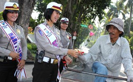 SURABAYA, 1kata.com – Anggota Polwan Surabaya membagikan mawar merah, Sabtu (1/9/2012). Mereka berbahagia menyambut HUT Polwan 1 September. Namun mereka sedih karena korp kepolisian baru saja kehilangan dua anggotanya di Solo. Satu diserang teroris, satu lagi meninggal dalam baku tembak saat penangkapan teroris. (surya/haorrahman)