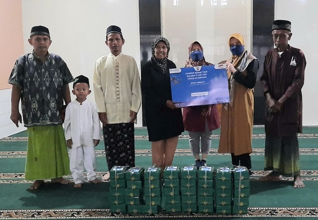Penyerahan takjil kepada masyarakat yang dilakukan oleh FIFGROUP Tasikmalaya kepada Ketua DKM Masjid Asy Syaaru, H. Yoyo (kiri), dan Ketua Yayasan Panti Asuhan Azzahra, Syamsul (kedua dari kiri).