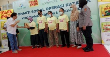 Bantuan diserahkan Direktur Sido Muncul, Irwan Hidayat, kepada Kepala Rumah Sakit (Karumkit) Bhayangkara TK II Sartika Asih, Bandung, Kombes Pol Imanta Tarigan.
