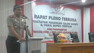 “Kami dari kepolisian menyampaikan ucapan terima kasih dan penghargaan yang setinggi-tingginya kepada masyarakat,” kata Kapolres Said Anna Fauza, pada Rapat Pleno Terbuka Penetapan Pasangan Calon Bupati dan Wakil Bupati Terpilih, di Selayar, Selasa (19/1/2016) malam.