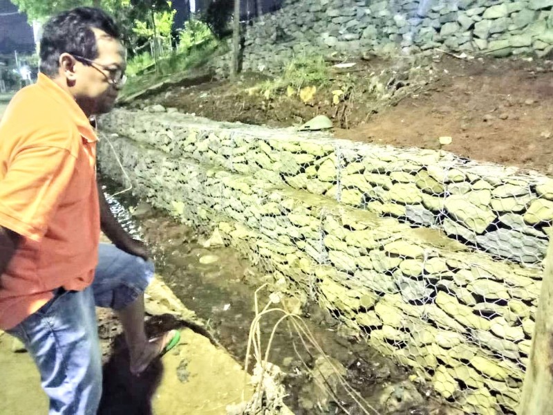 Untungnya, tambahnya lagi, ada bantuan kawat bronjong dan batu dari UPT PUPR Cibinong Kabupaten Bogor, sehingga perbaikan jalan longsor tersebut bisa berlanjut.