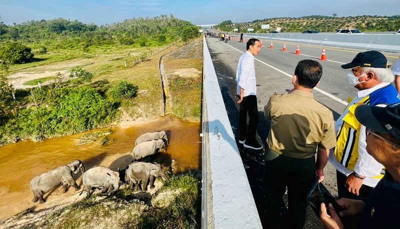 “Saya terus mengingatkan mengenai pentingnya juga memperhatikan lingkungan, seperti yang kita bangun Jalan Tol Pekanbaru-Dumai misalnya, ada terowongan untuk lintasan gajah sebanyak enam tempat,” kata Presiden Jokowi.